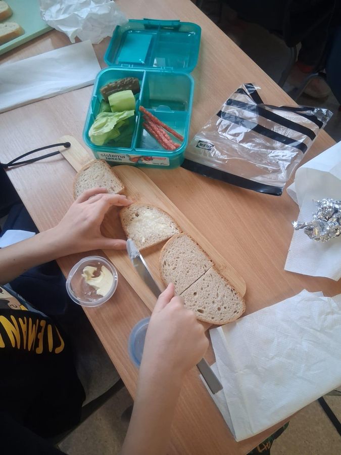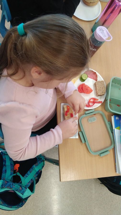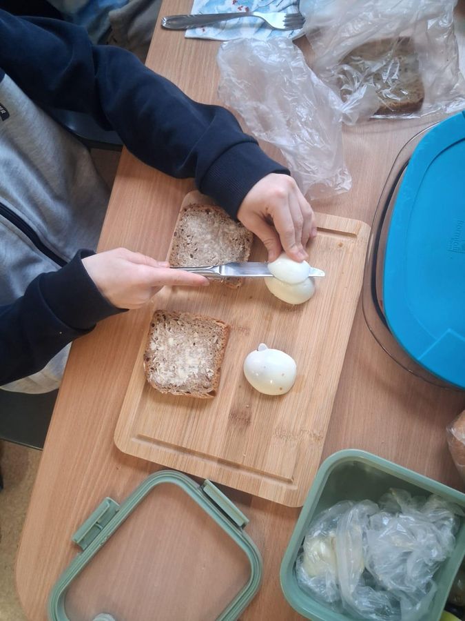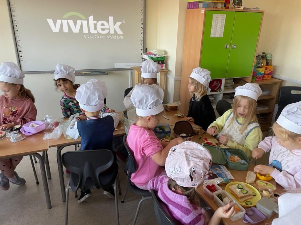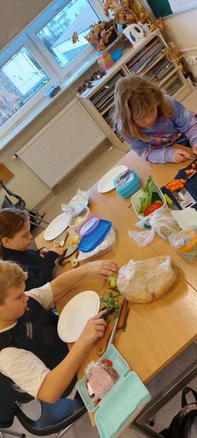 🥑 Największą atrakcją były warsztaty kulinarne, podczas których uczniowie samodzielnie przygotowywali swoje zdrowe śniadania. Powstały pełnoziarniste, kolorowe kanapki, owocowe kompozycje i pyszne, pożywne przekąski 🥪🍓. Dzieci pracowały z ogromnym zaangażowaniem, wykazując się kreatywnością i świetnym humorem, a wspólna degustacja była radosnym podsumowaniem całego przedsięwzięcia 😊🍽️.