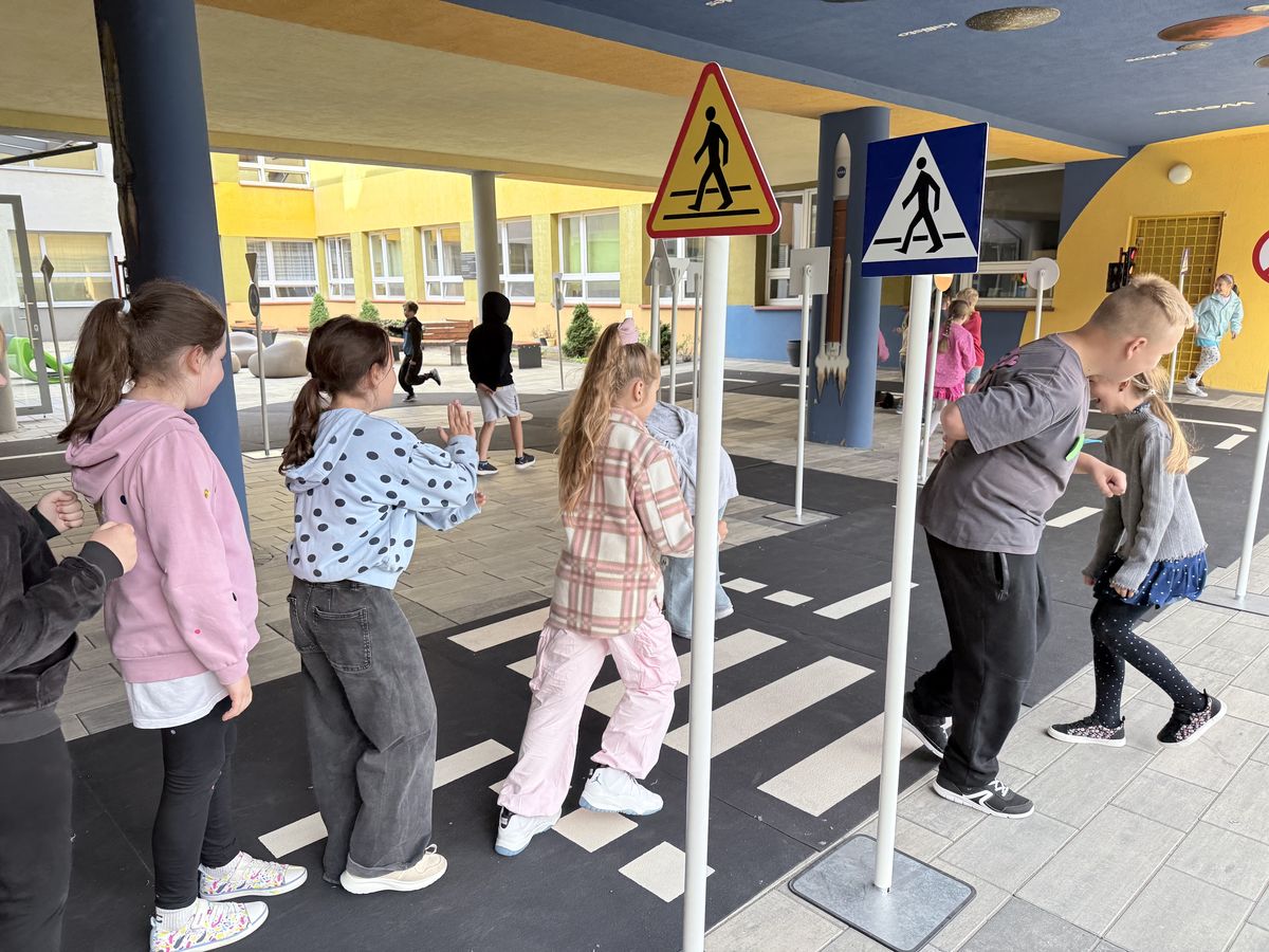 W minionym tygodniu nasze szkolne patio zamieniło się w prawdziwe miasteczko ruchu drogowego! 🚧🚦 Uczniowie klas 1–3 mieli okazję wziąć udział w wyjątkowych zajęciach, których celem było utrwalenie zasad bezpiecznego poruszania się po drogach.