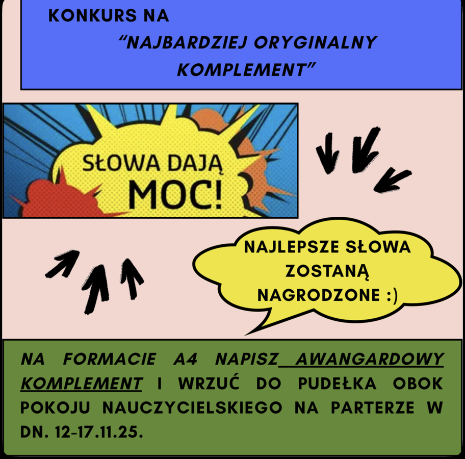 W związku z tym zapraszamy uczniów klas 4-8 do udziału w konkursie na „Najbardziej oryginalny komplement”.