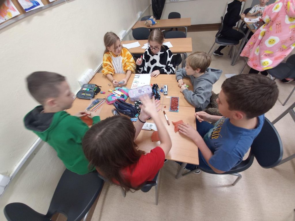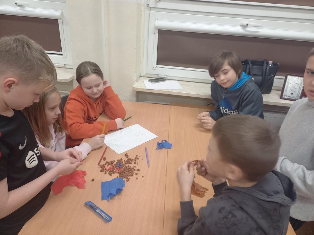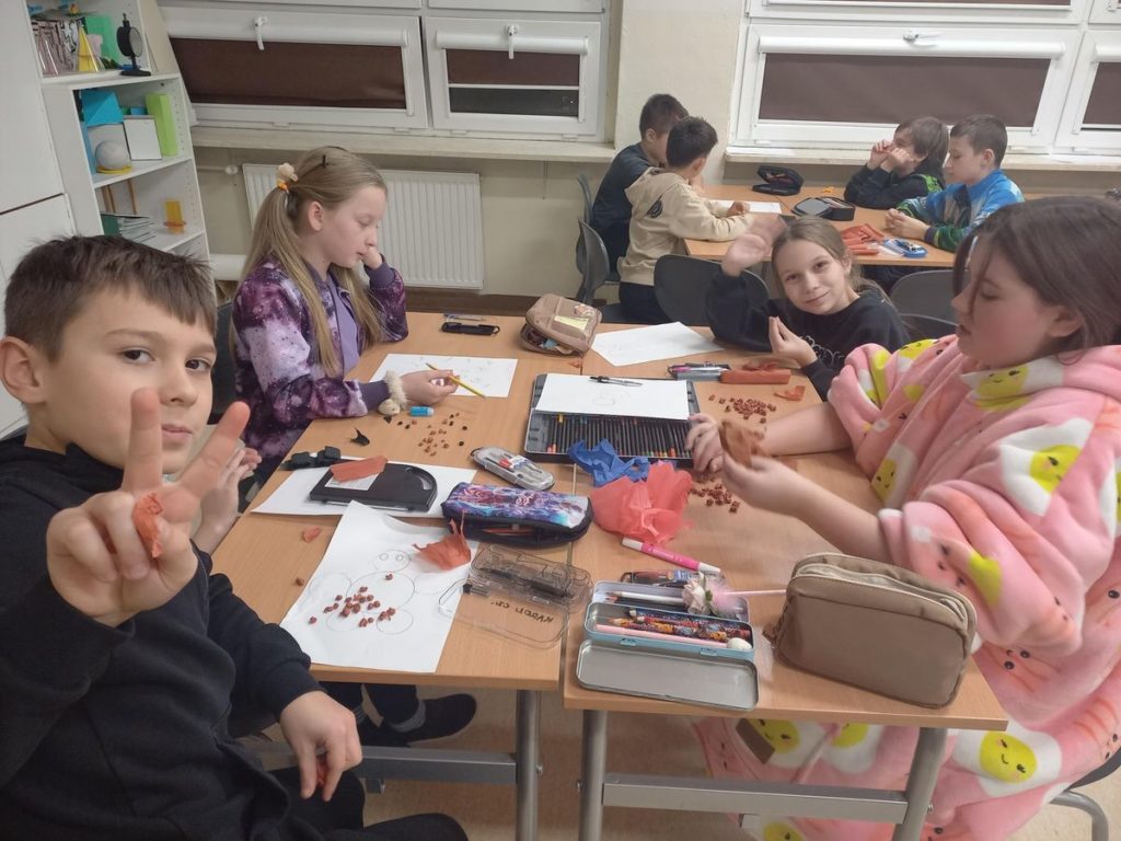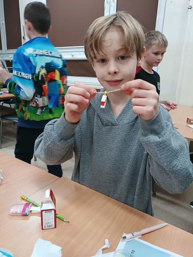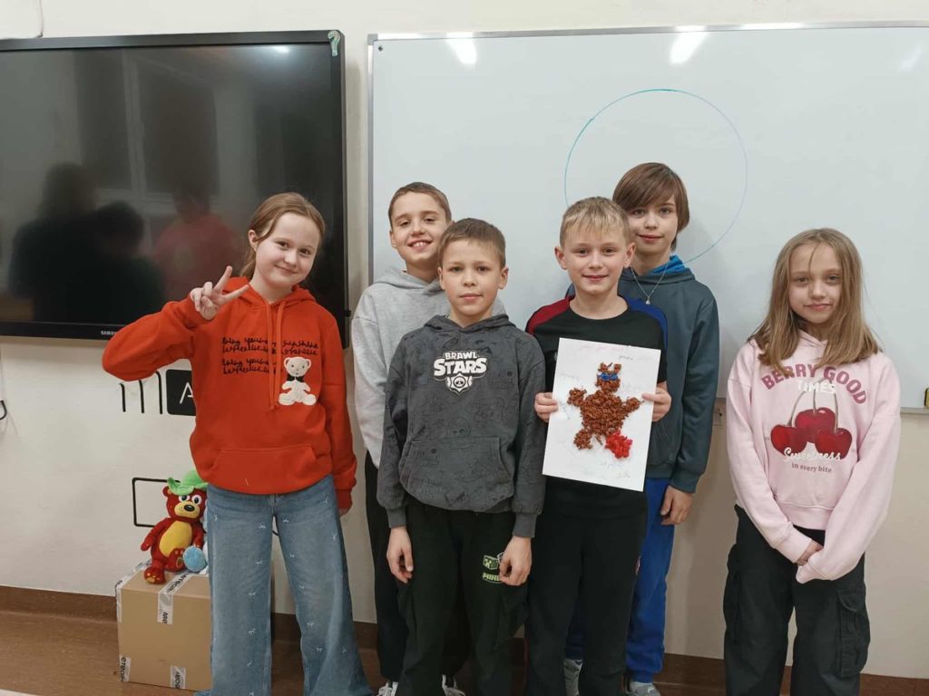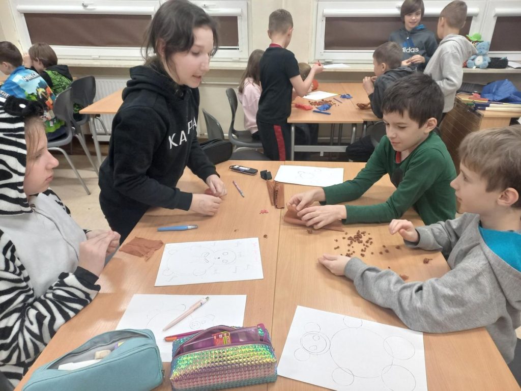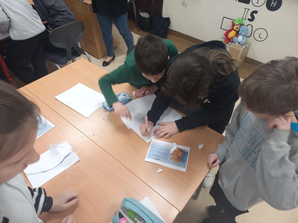 Pierwszą zabawą była praca z cyrklem, dzięki której powstały fantastyczne „misiowe” kształty. Uczniowie własnoręcznie wykleili swoje misie bibułą, tworząc niezwykłe dzieła plastyczne.