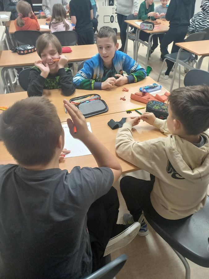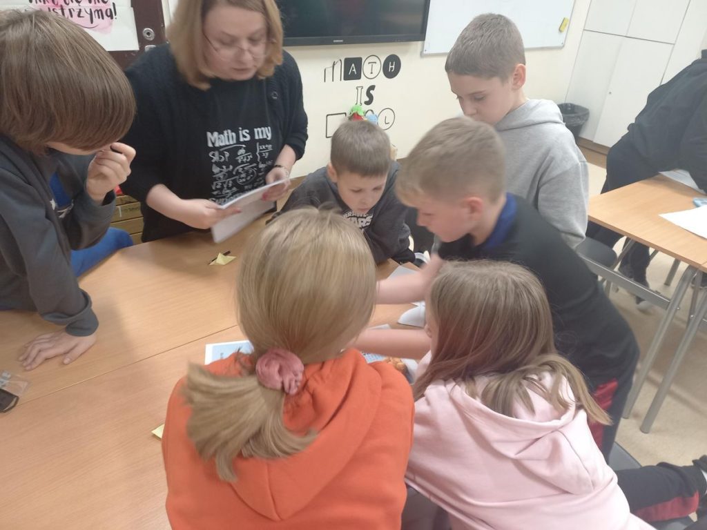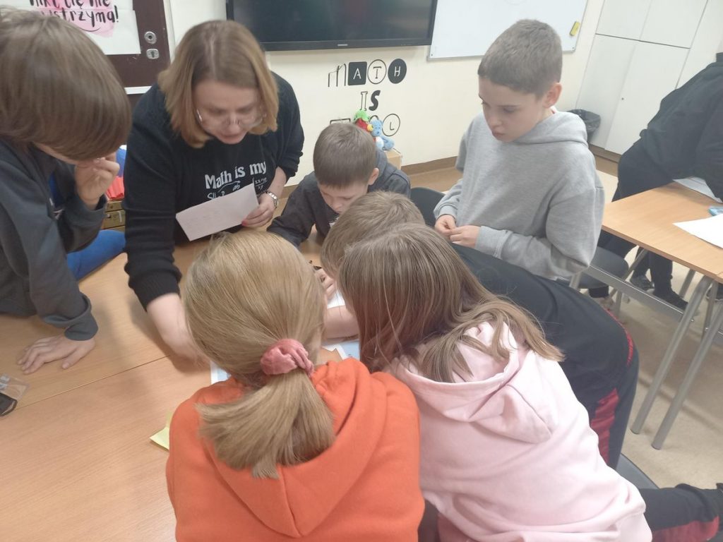 Jednak najważniejszym punktem zajęć było odnalezienie kodu do pudełka z nagrodami! Aby go zdobyć, każda drużyna musiała rozwiązać matematyczne zadania – a koperty z nimi były sprytnie schowane na całym drugim piętrze szkoły. Poszukiwania i rywalizacja okazały się świetną zabawą.