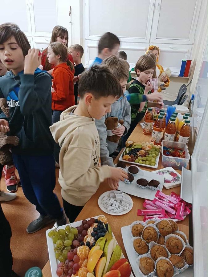 Nie zabrakło również poczęstunku przygotowanego przez rodziców oraz wspólnej zabawy z misiem na korytarzu.