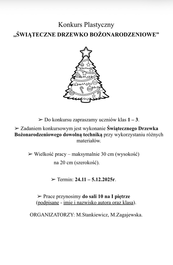Konkurs Plastyczny ,,Świąteczne Drzewko Bożonarodzeniowe”