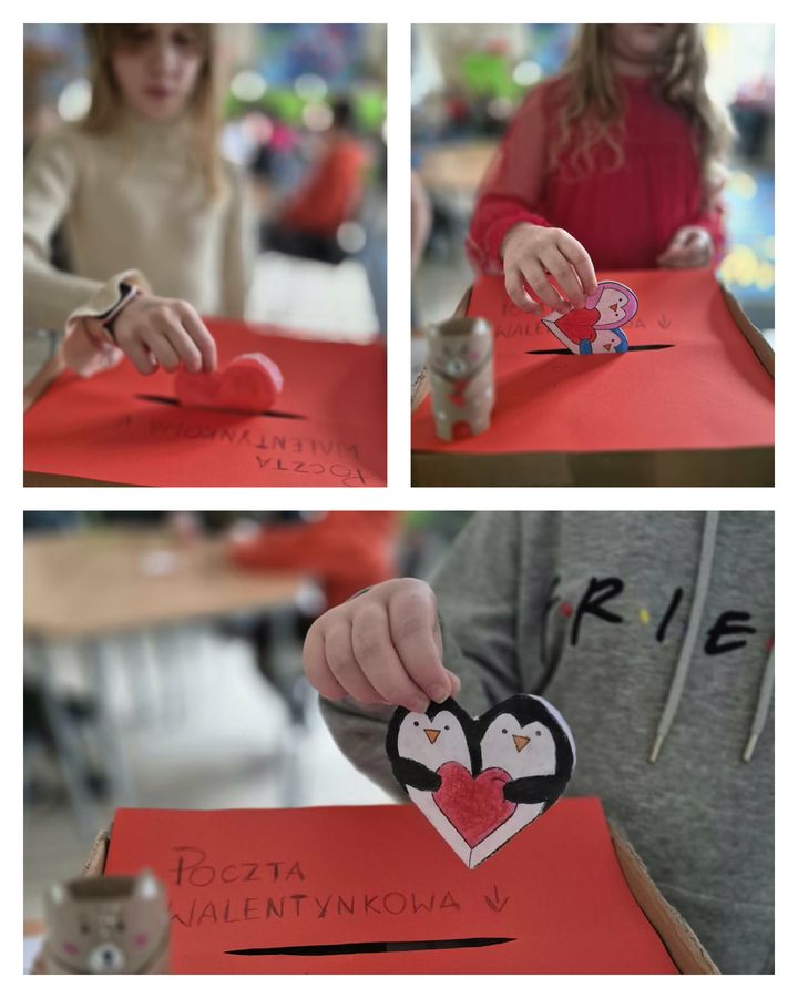 💌 Walentynki świętowaliśmy wspólnie poprzez zabawy integracyjne oraz pocztę walentynkową – dzieci z ogromnym zaangażowaniem przygotowywały i wręczały sobie miłe wiadomości.