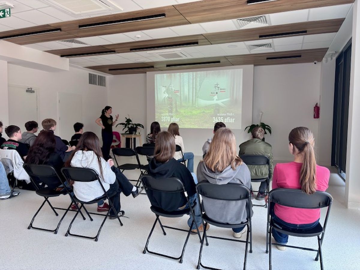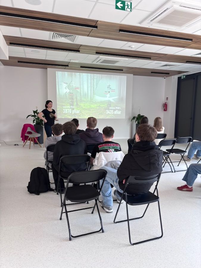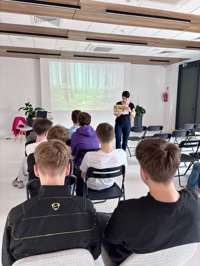 Dzięki zaproszeniu Biblioteki Publicznej Gminy Grodzisk Mazowiecki do Pawilonu Kultury, ósme klasy miały możliwość uczestnictwa w wyjątkowych warsztatach edukacyjnych pt. “Śledztwo katyńskie”, realizowane w ramach kampanii społecznej “Pamiętamy. Katyń 1940”.