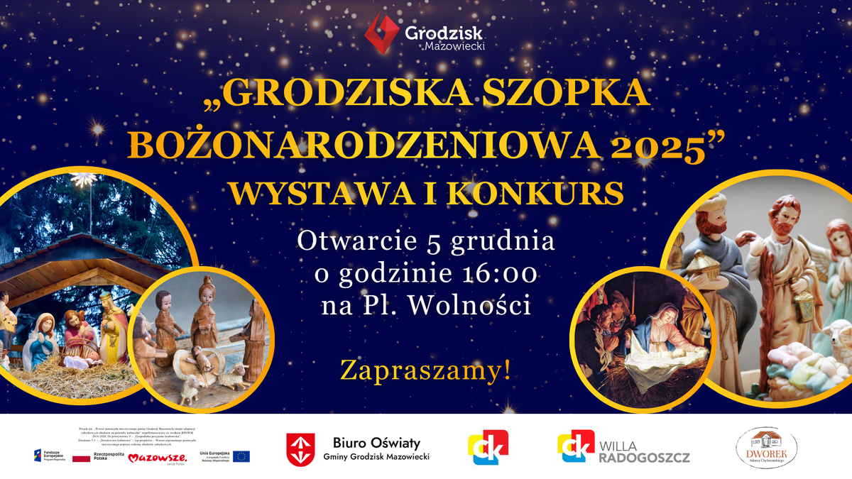 Burmistrz Grodziska Mazowieckiego oraz Biuro Oświaty serdecznie zapraszają na otwarcie wyjątkowej Wystawy Szopek Bożonarodzeniowych.